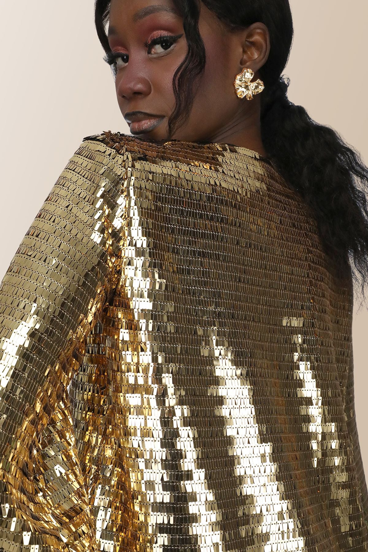 Elifnaz Gold Payetli V Yaka Oversize Mini Elbise, şıklığı ve rahatlığı bir arada sunuyor. Altın payet detaylarıyla göz alıcı bir parlaklık sağlar, V yaka tasarımı ise zarif bir görünüm kazandırır. Büyük boy seçeneği sayesinde konforlu kullanım sunarken, mini boyuyla modern ve dinamik bir stil yaratır. Özel davetler ve gece etkinlikleri için ideal bir seçimdir.