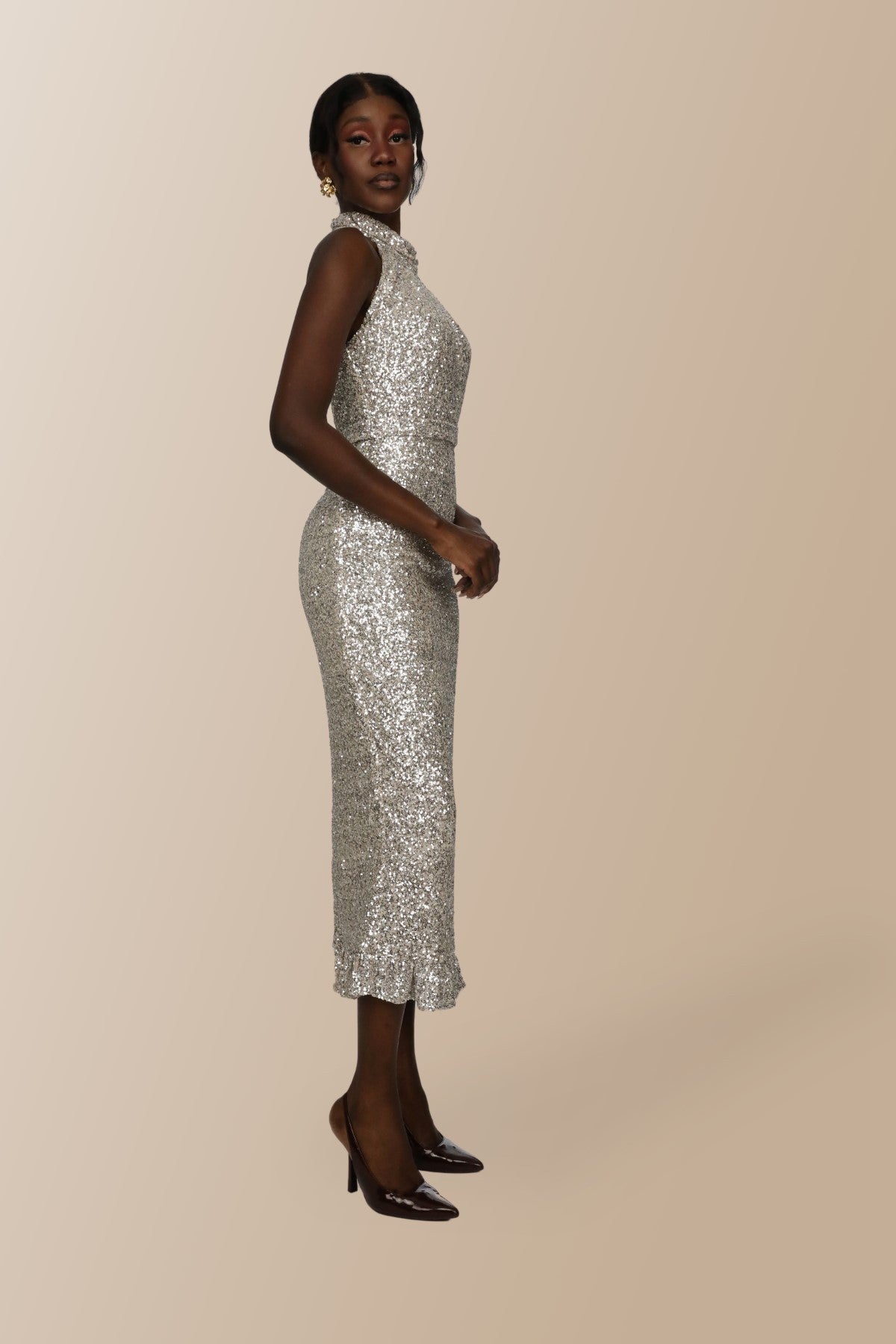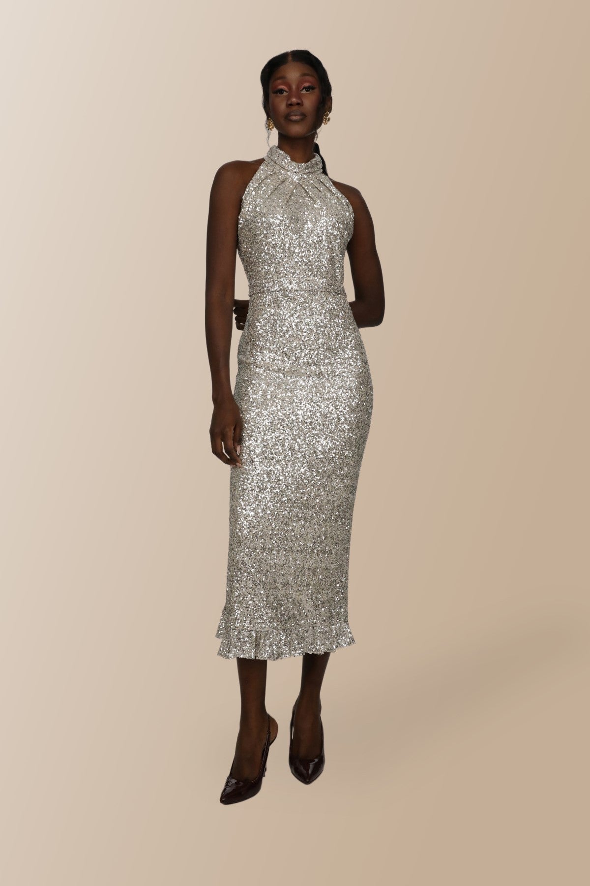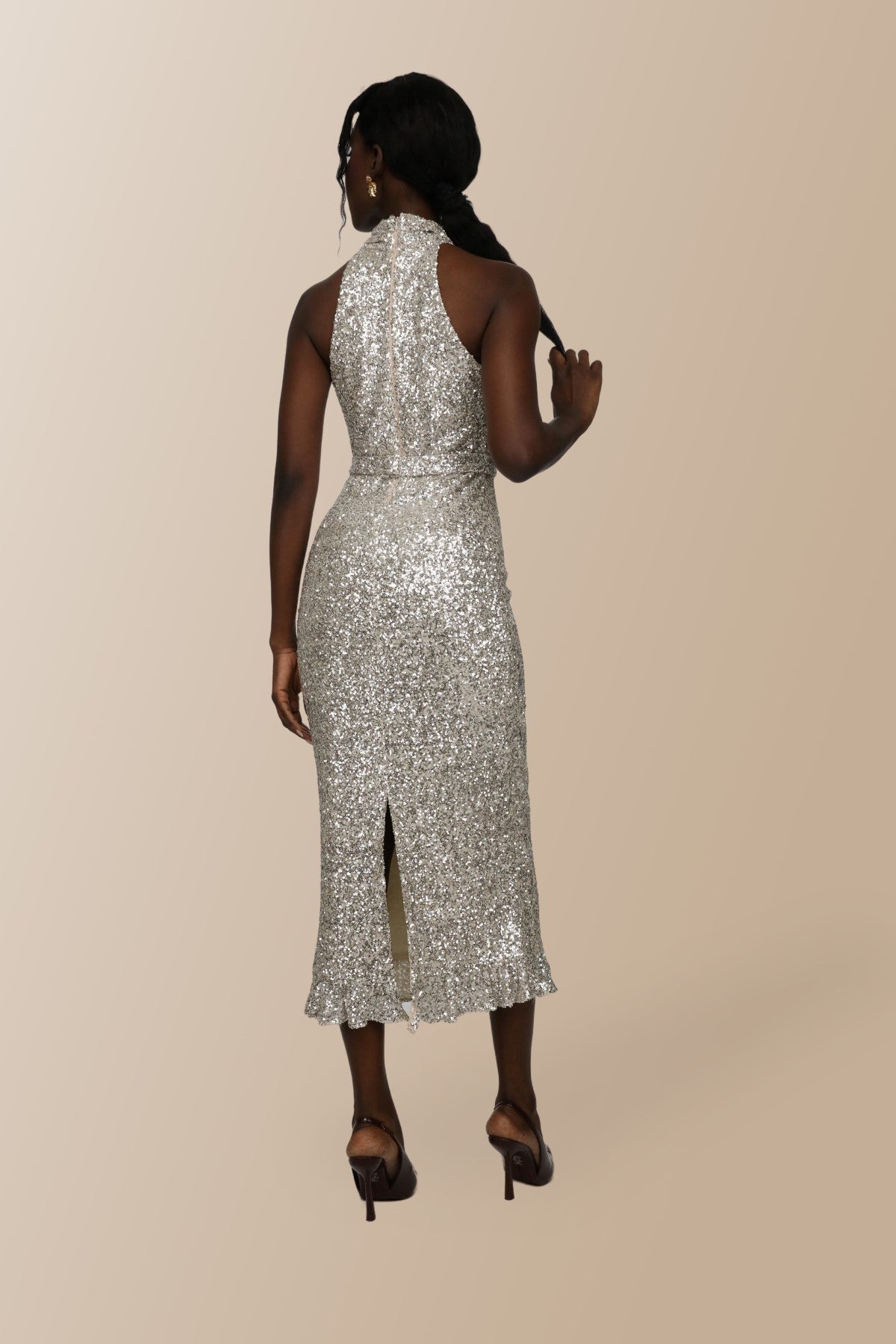 Elifnaz Boğazlı Kolsuz Boğazlı Maxi Elbise - Gümüş