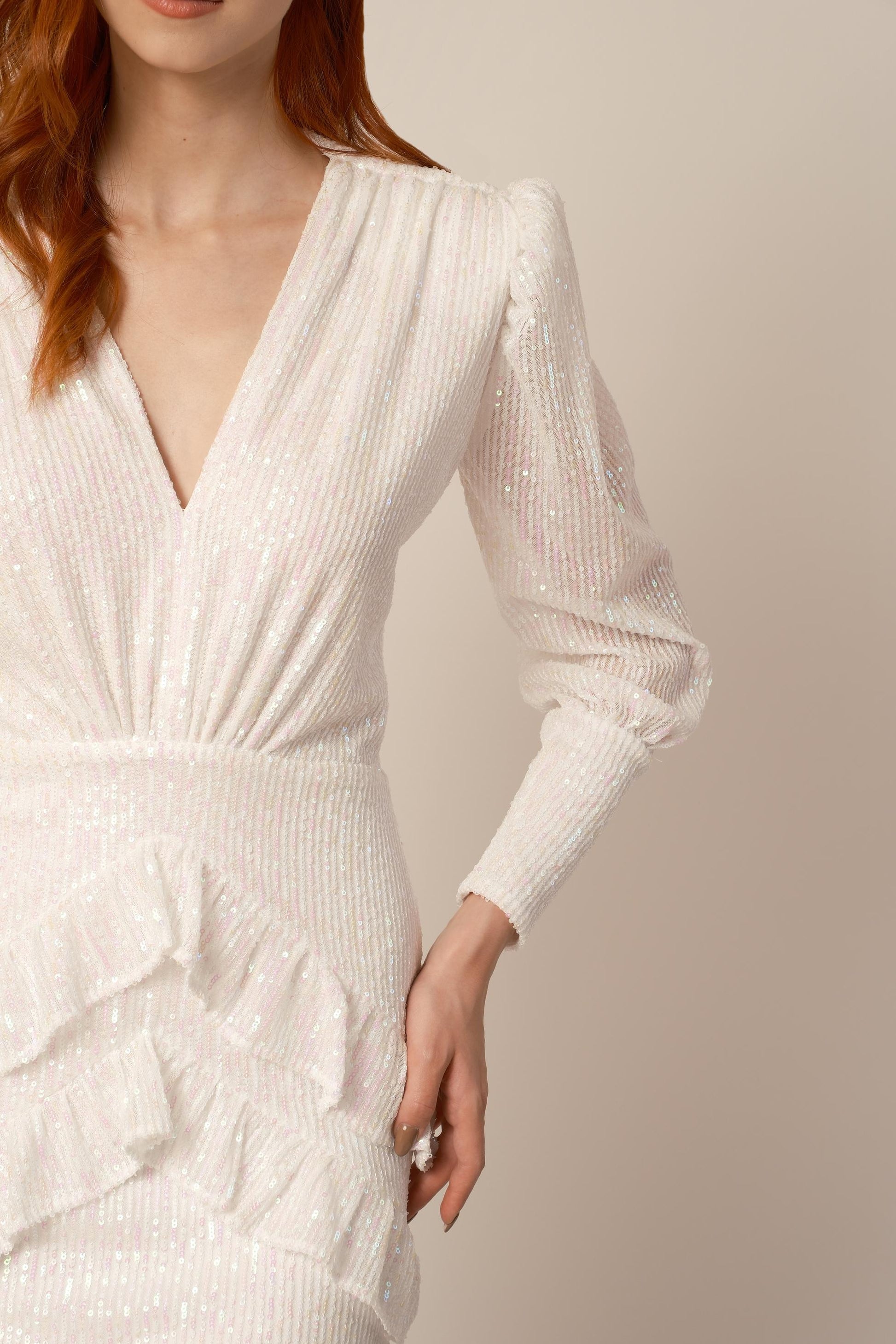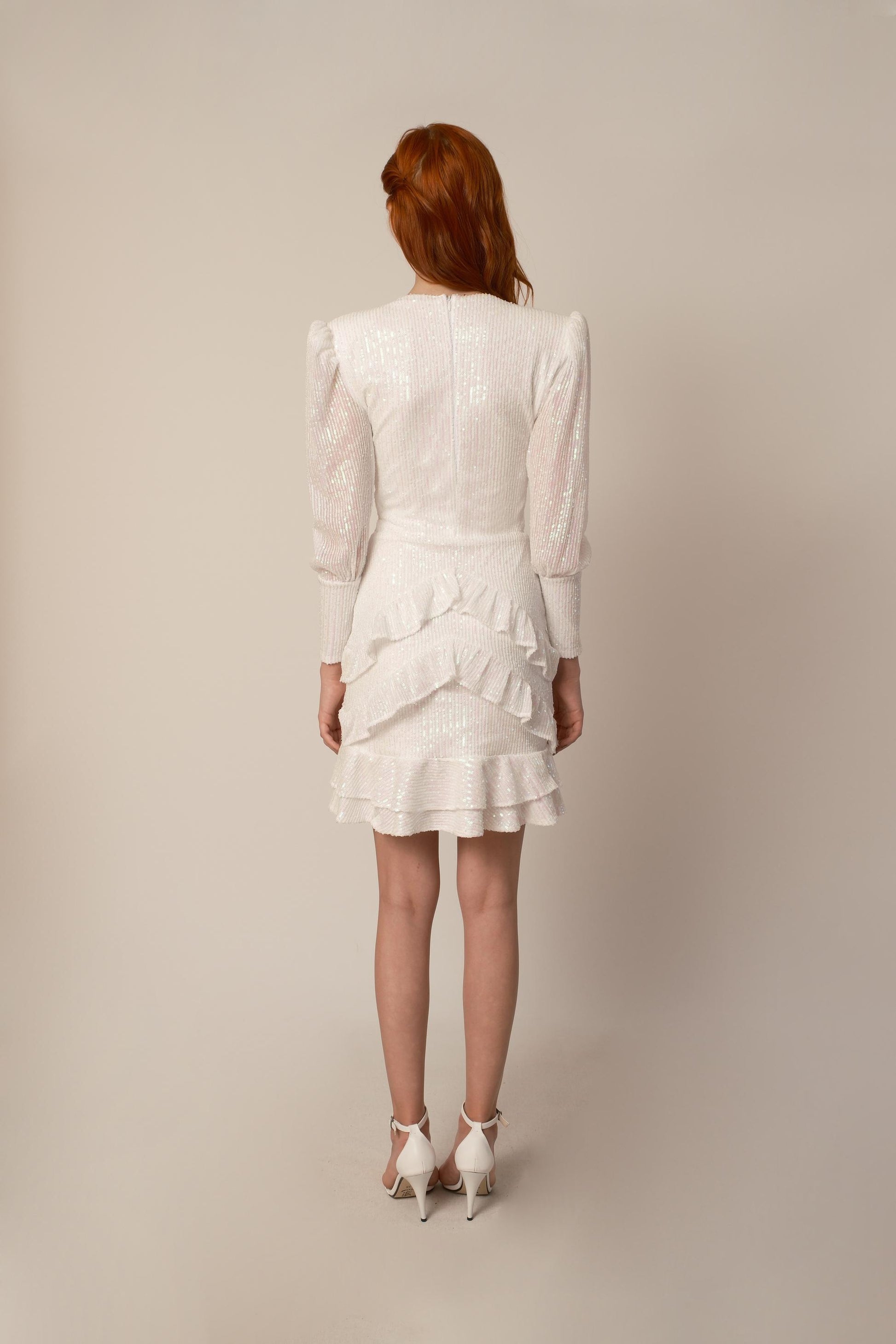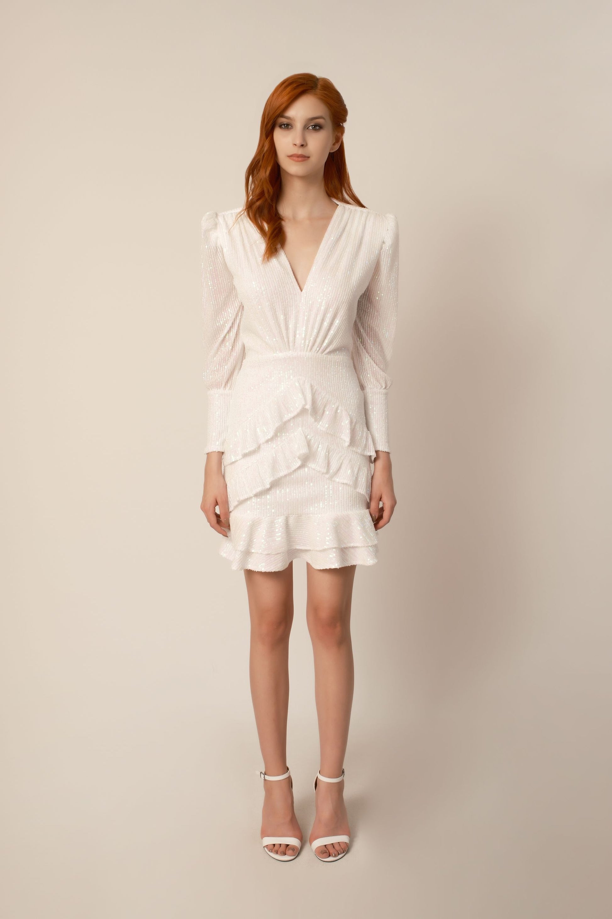 Karpuz Kol Fırfırlı Elbise - Beyaz