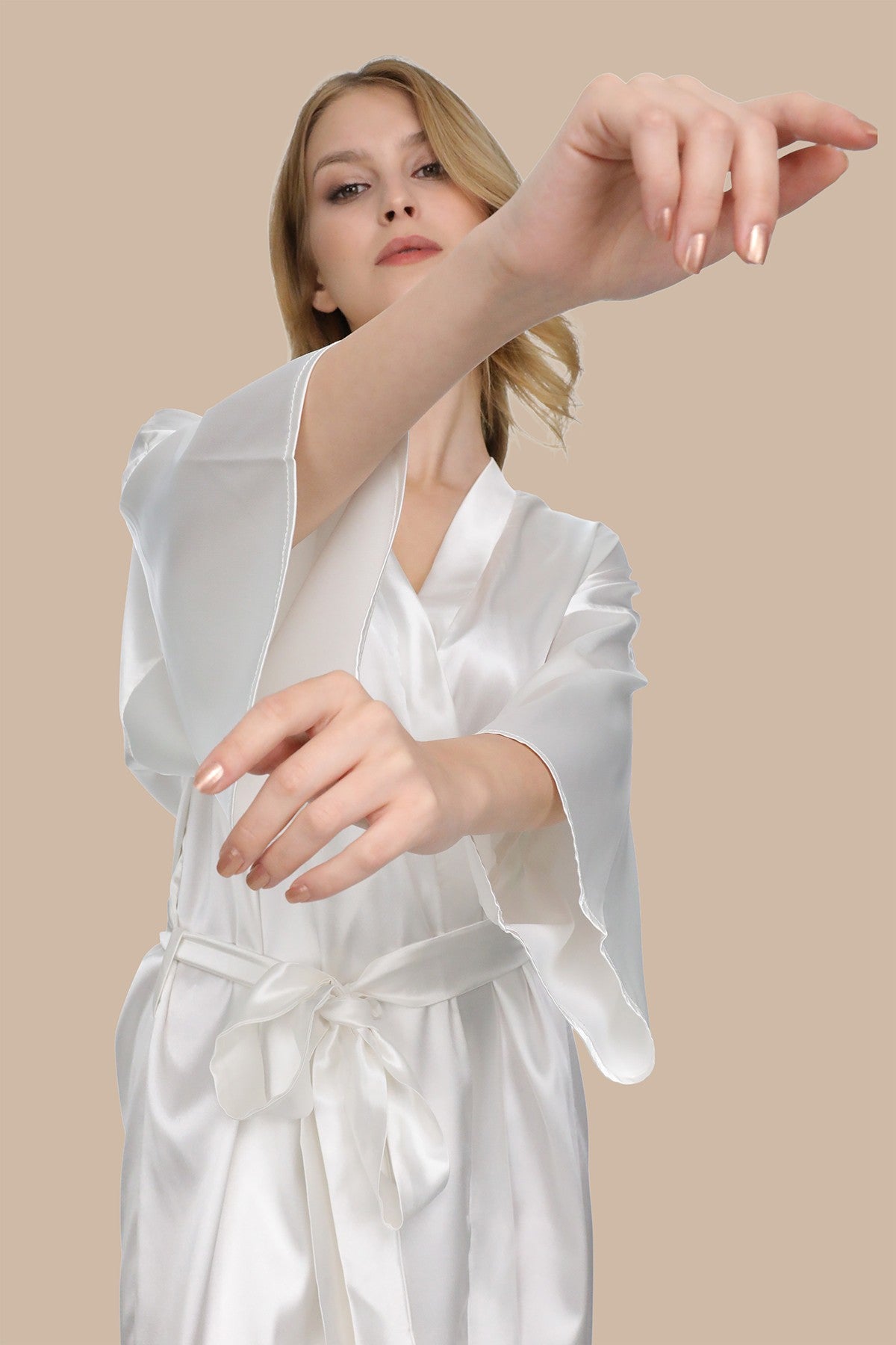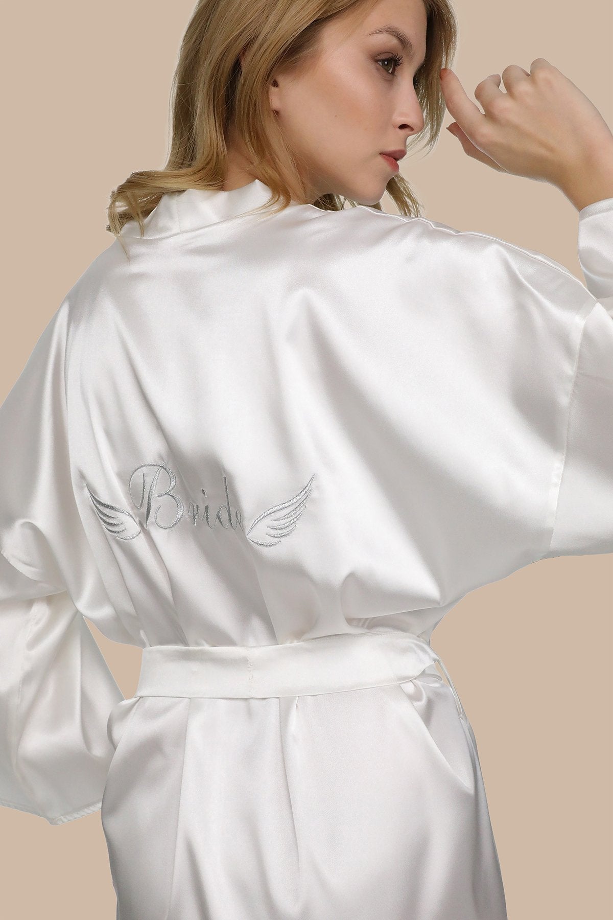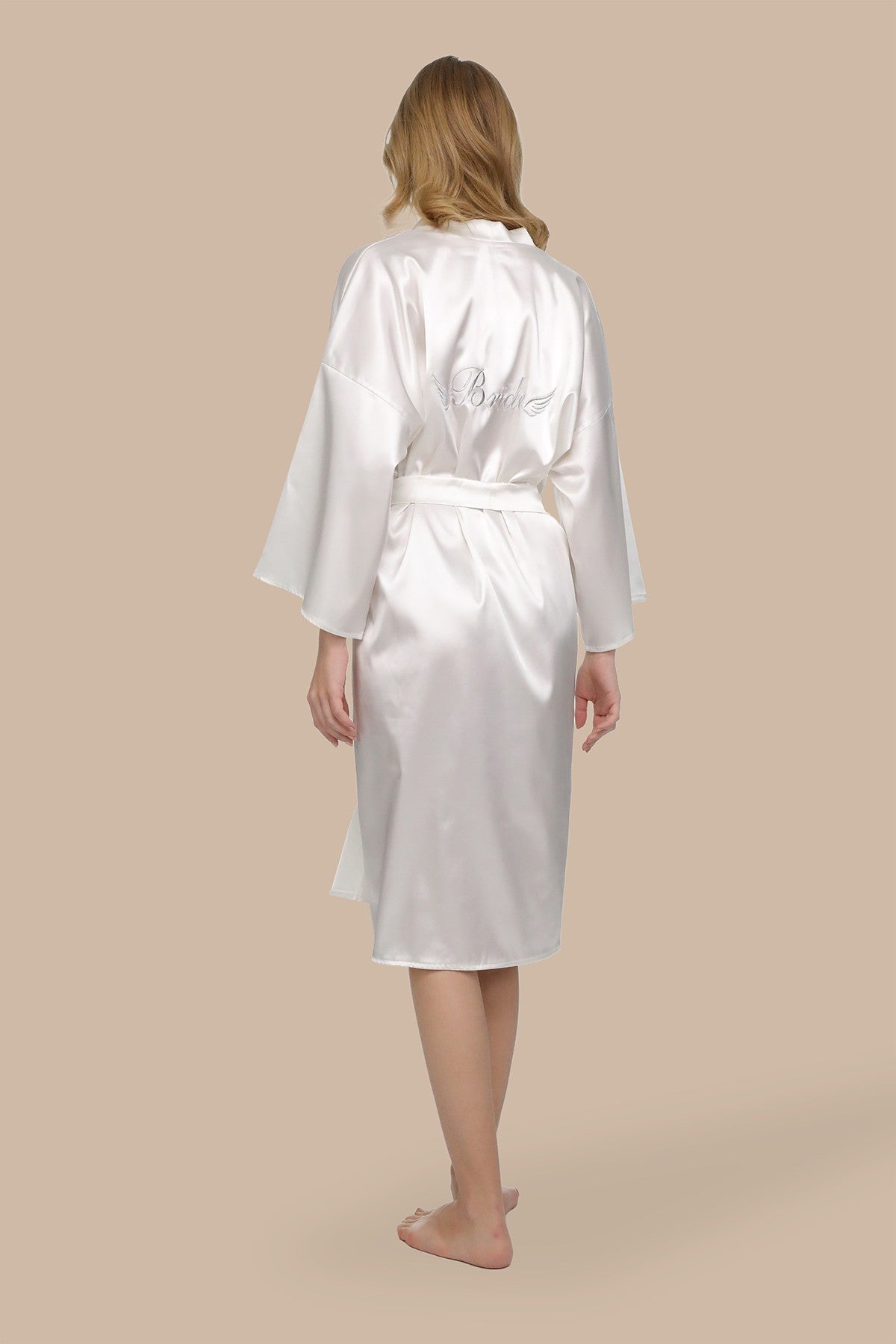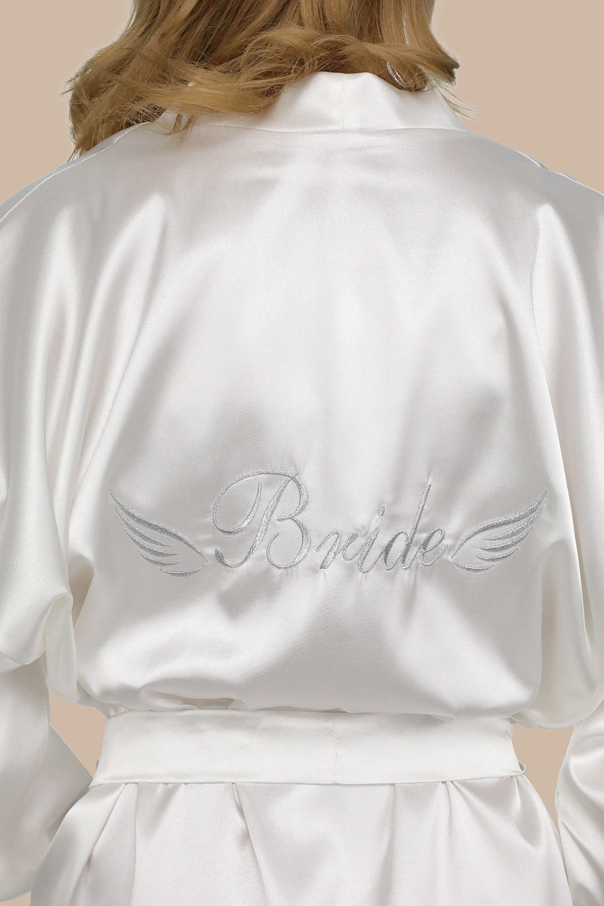 Kırık Beyaz Özel Tasarım Nakışlı Gelin Gelin Sabahlığı