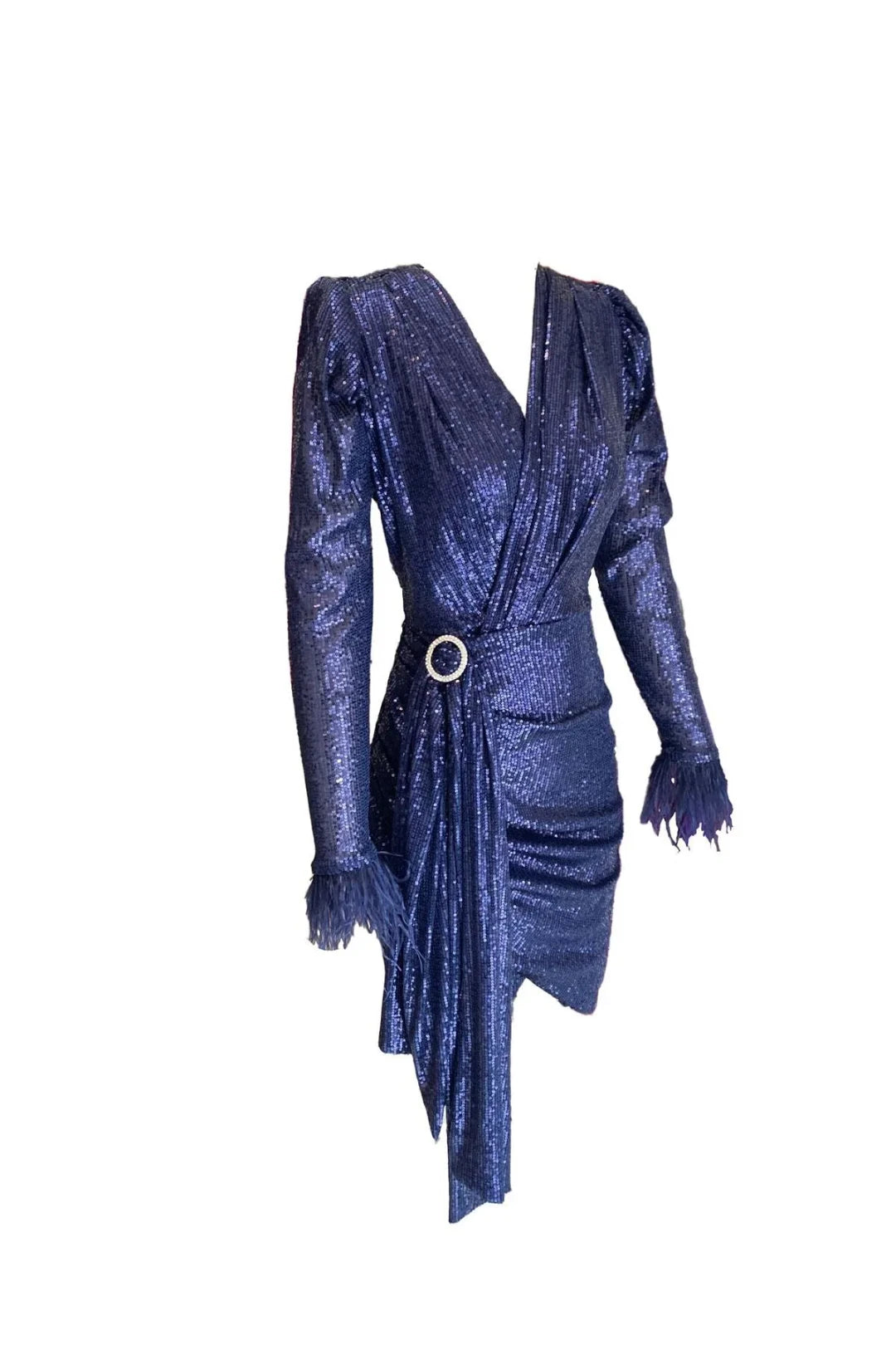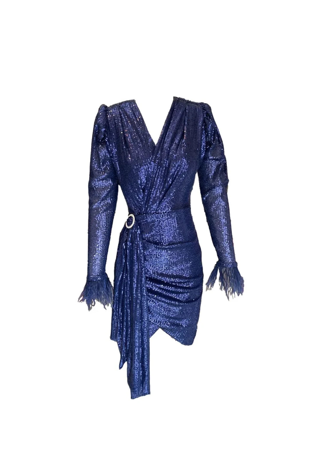 Payetli Otriş Detaylı Karpuz Kol Elbise - Lacivert