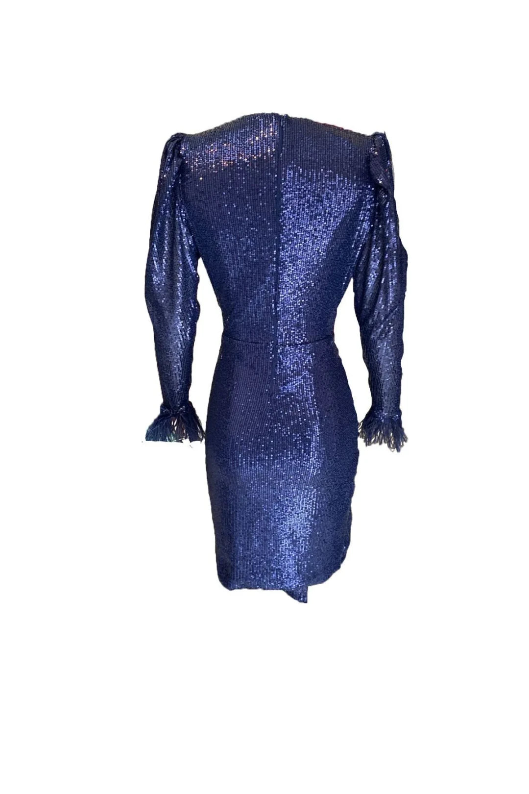 Bu lacivert elbise, payetli otriş detayları ve karpuz kol tasarımıyla zarif ve şık bir görünüm sunuyor. İnce işçiliği sayesinde özel davetlerde ve gece etkinliklerinde dikkat çekici bir tercih olur. Karpuz kolları, hareket özgürlüğü sağlarken elbiseye modern bir hava katar. Kaliteli kumaşıyla konforlu kullanım sunar ve şıklığınıza bir dokunuş katar.