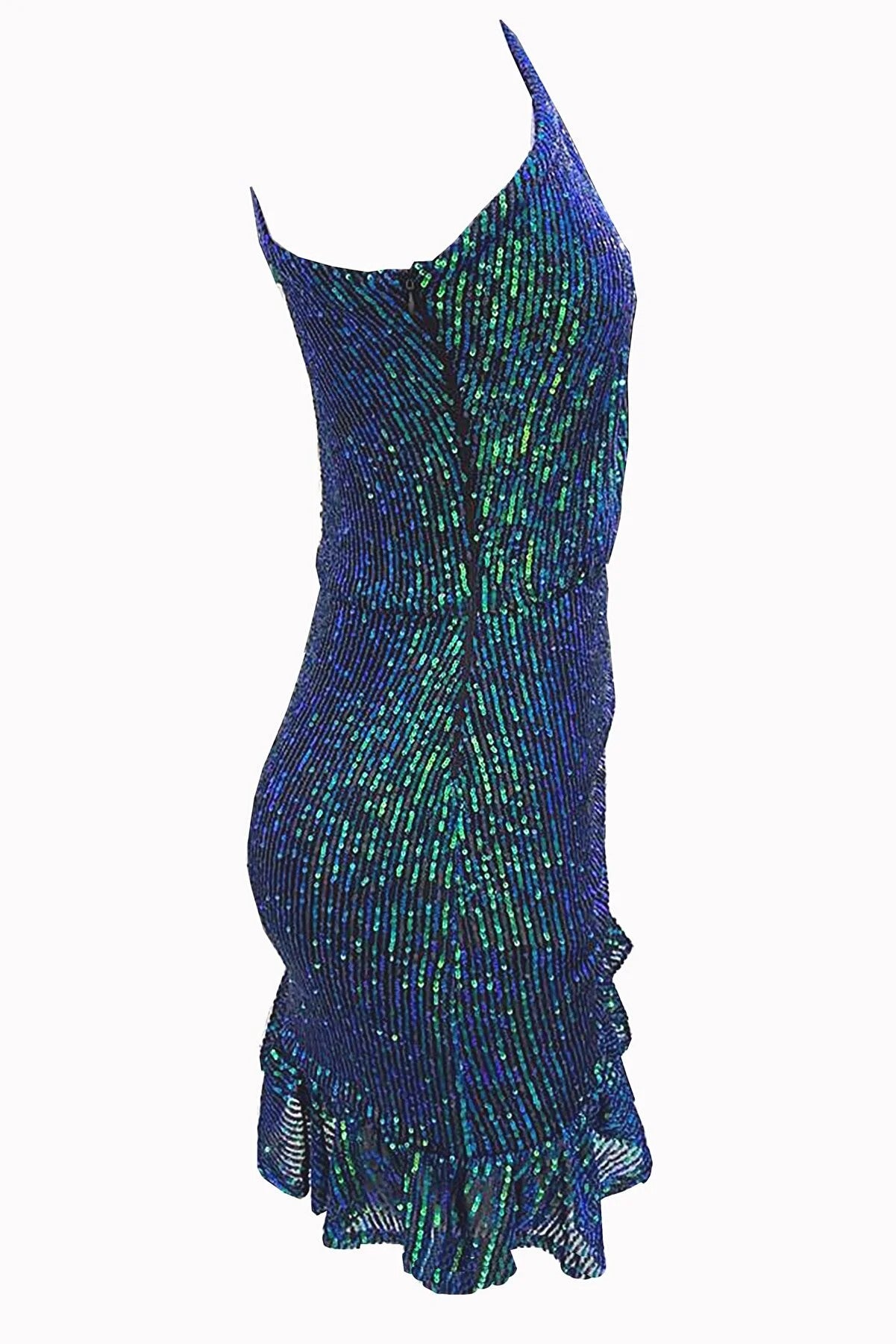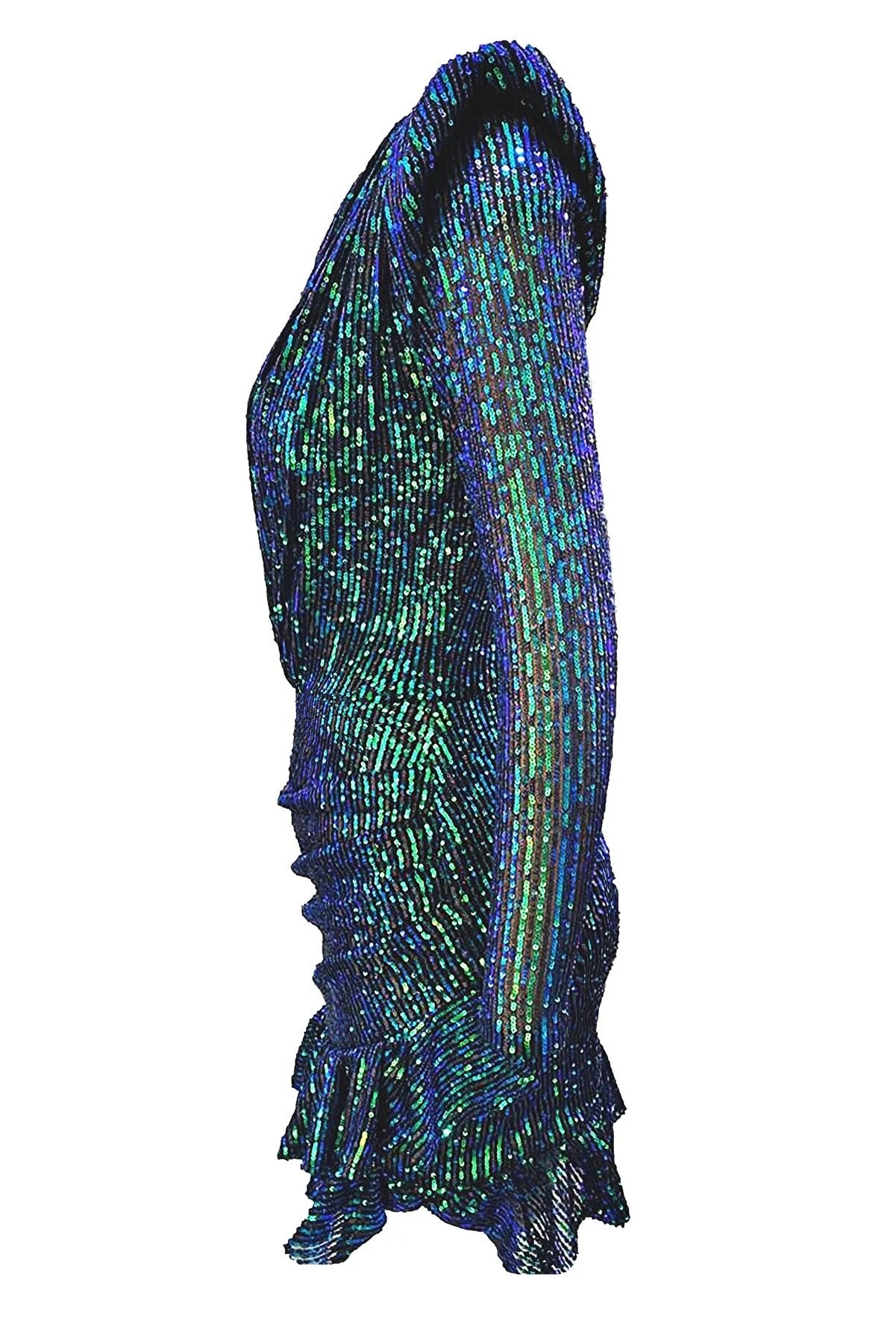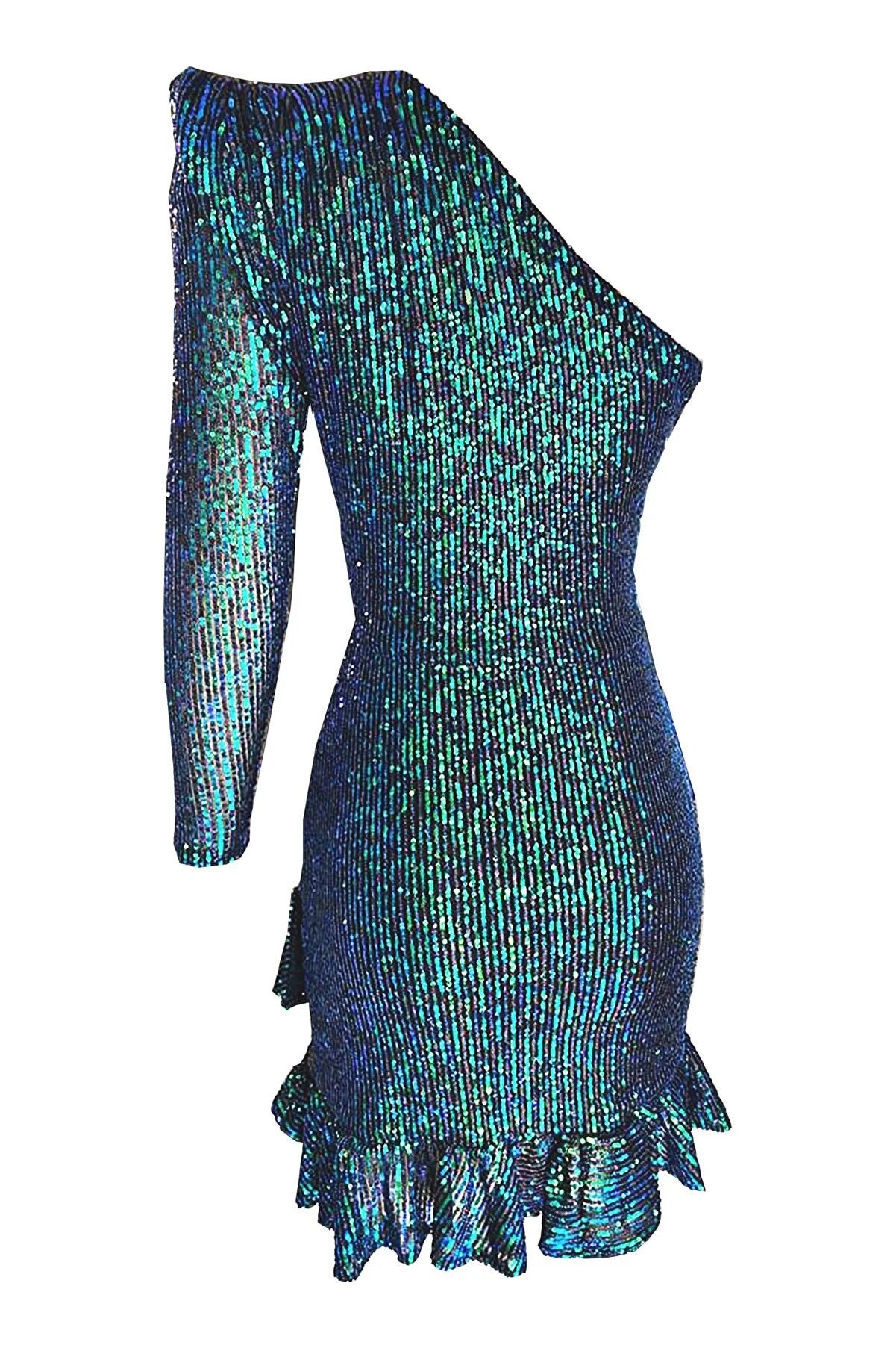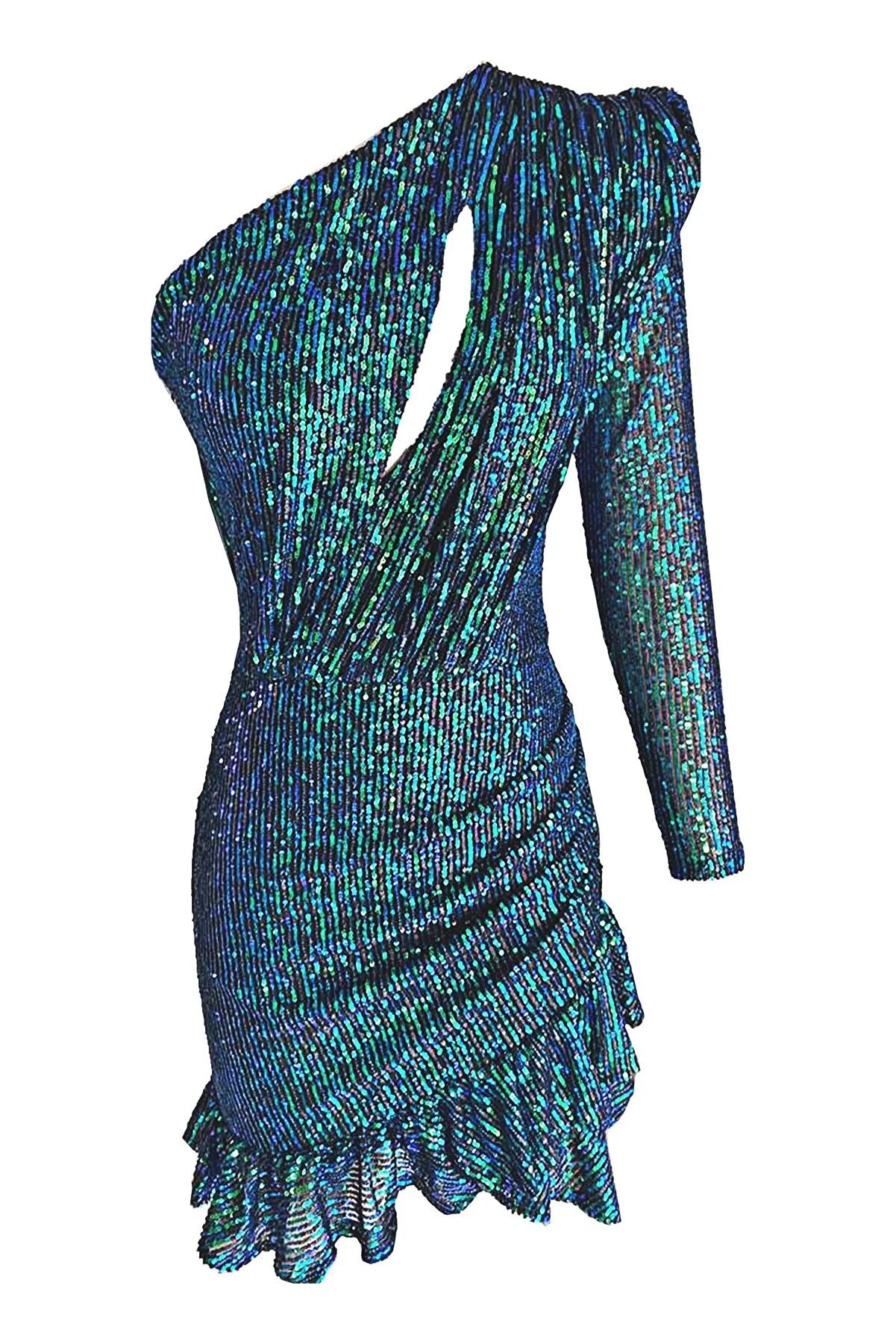 Payetli Tek Omuz Elbise - Mat Lacivert